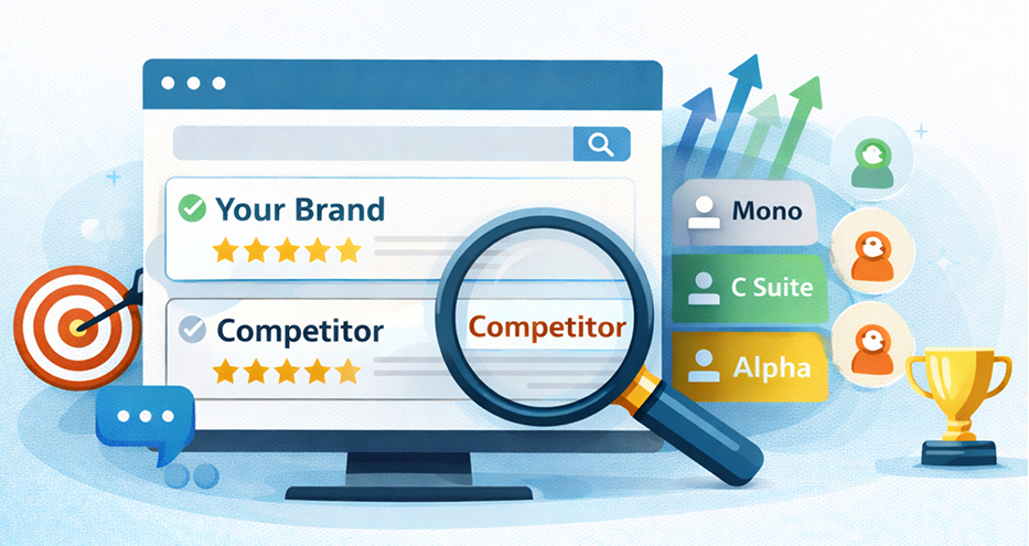Monitor competitor visibility and stay ahead in AI search rankings. Get side-by-side competitor dashboards and trend reports across your desired prompts.