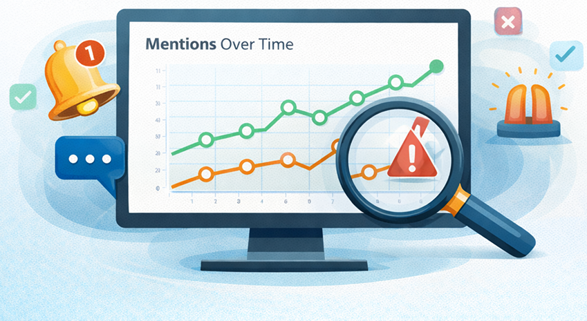 Track mentions over time and catch issues as soon as they arise. Get automated alerts when visibility decreases or competitors make gains.
