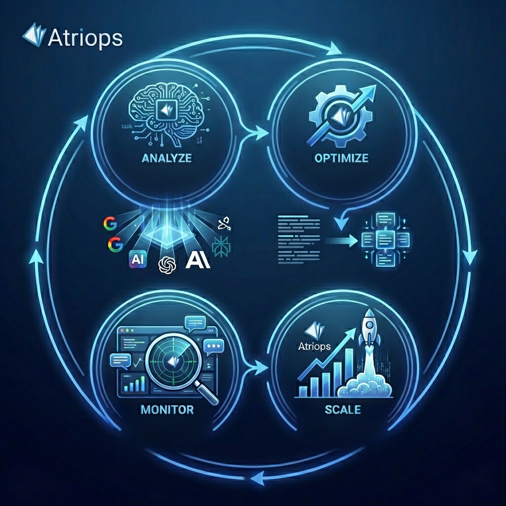 AEO is an ongoing process. AI platforms continuously evolve, and content must be monitored and refined to maintain performance. Atriops provides continuous optimization, performance analysis, and regular reporting to ensure sustained results.